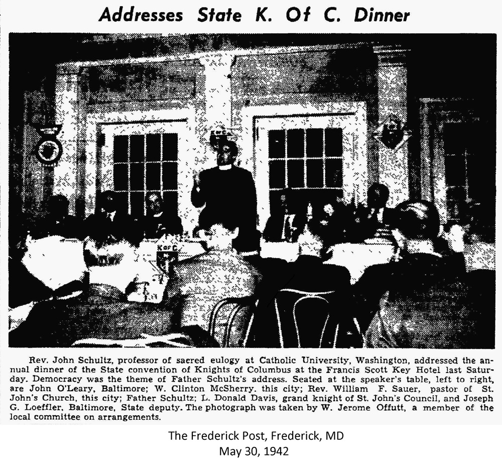 May 30. 1942. Newspaper article regarding members of St. John's Council participating in the annual Maryland State Convention held at the Francis Scott Key Hotel in Frederick, MD.