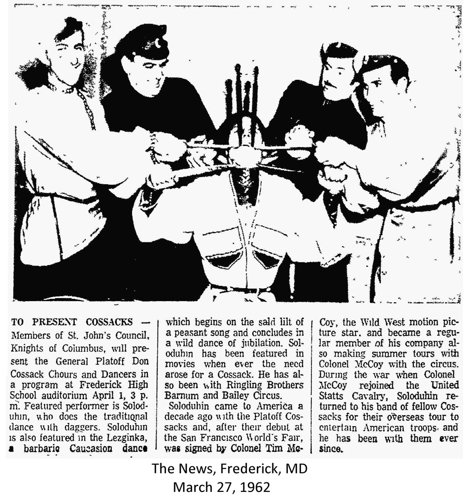 March 27, 1962. Newspaper article regarding members of St. John's Council presenting an entertainment program at the Frederick High School auditorium.