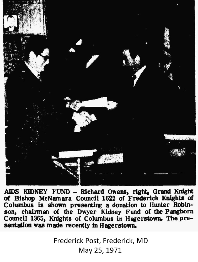 May 25, 1971. Newspaper article regarding St. John's Council's donation to the Dwyer Kidney Fund.
