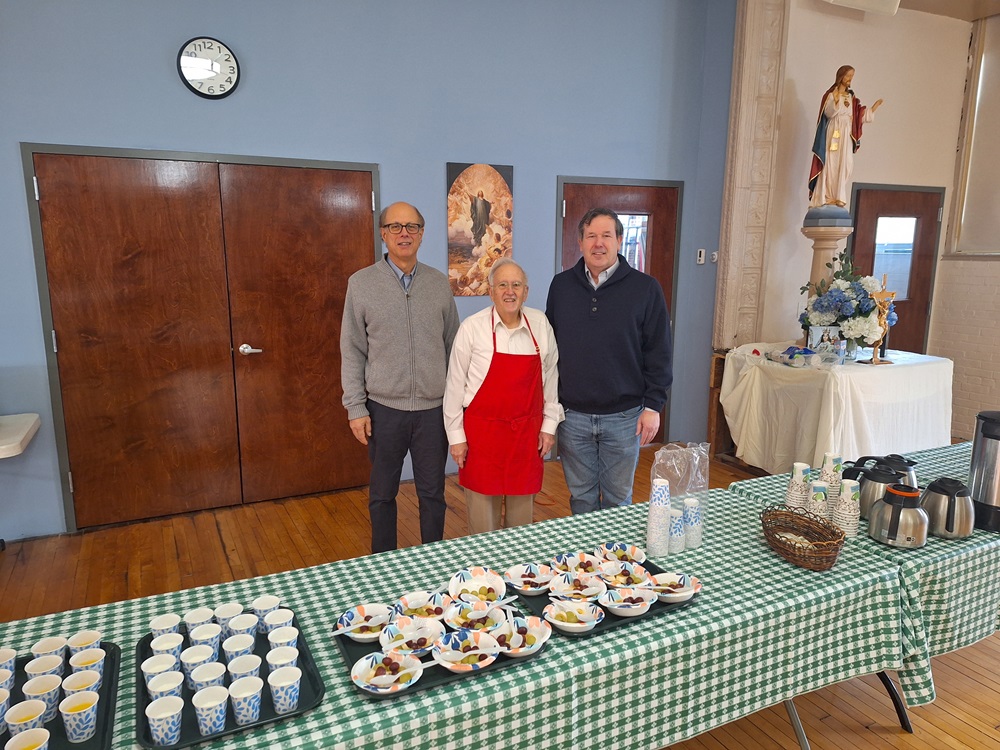 January 7, 2024 - St. John's Council hosts a monthly Coffee and Donuts Social after Masses, coordinated by Br. Woody Johnston. The social offered coffee, various teas, milk, orrange juice and hot chocolate for drinks, donuts and xhopped fruit bowls.
