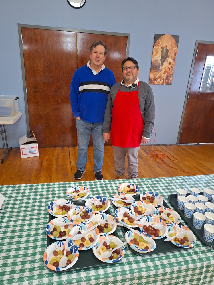 January 7, 2024 - St. John's Council hosts a monthly Coffee and Donuts Social after Masses, coordinated by Br. Woody Johnston. The social offered coffee, various teas, milk, orrange juice and hot chocolate for drinks, donuts and xhopped fruit bowls.