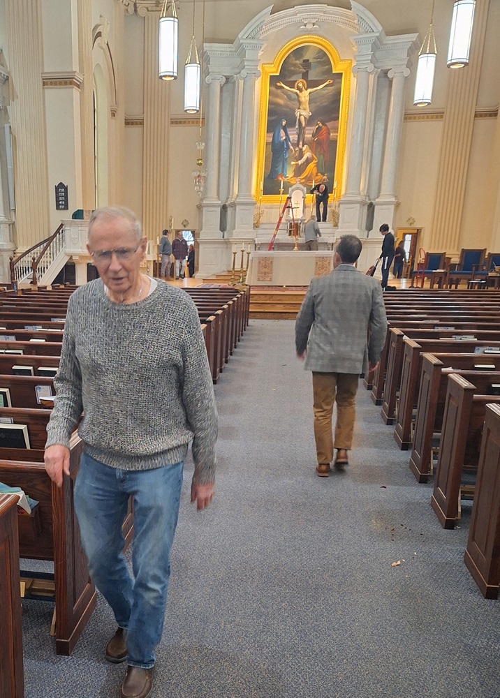 January 7, 2024 - Knights and family members help tale-down Christmas decorations at St. John the Evangelist Church. (LtoR) Br. Bob Willson and Br. Bobby McQuin (walking away).