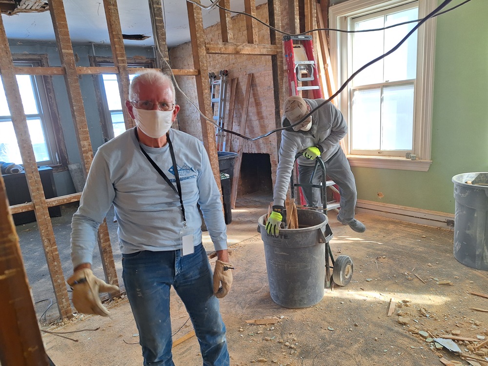 On Monday, February 5, 2024, Knights of St. John's Council continue the demolition of two rooms and a bath in the old rectory (16 E. Second St.) which will serve as quarters for diocian seminarians.