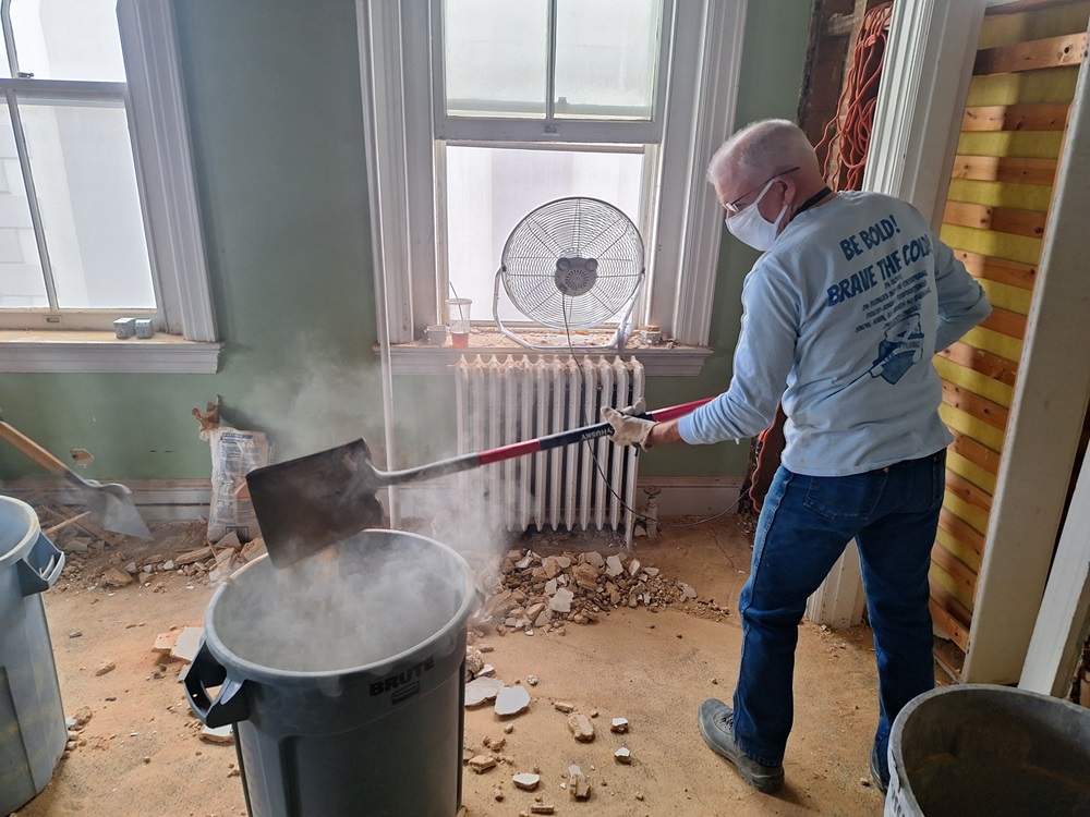 On Monday, February 12, 2024 - Knights continue demolition of rooms in the old rectory, 116 E. 2nd St. PGK Rick Casazza hard at work.