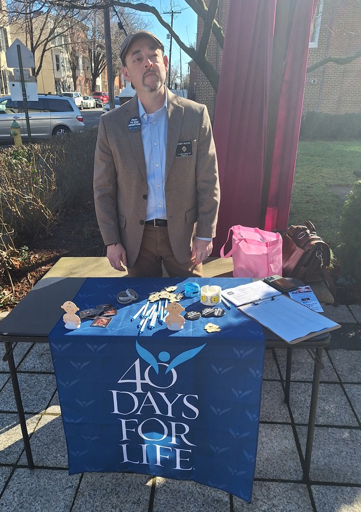 Sunday, March 3, 2024 - Knights stand outside after a Mass at St. John the Evangelist Church to collect for the last weekend of our annual "Baby Bottle Campaign". All proceeds go to the Care Net Pregnancy Center of Frederick, which supports mothers who choose life.
