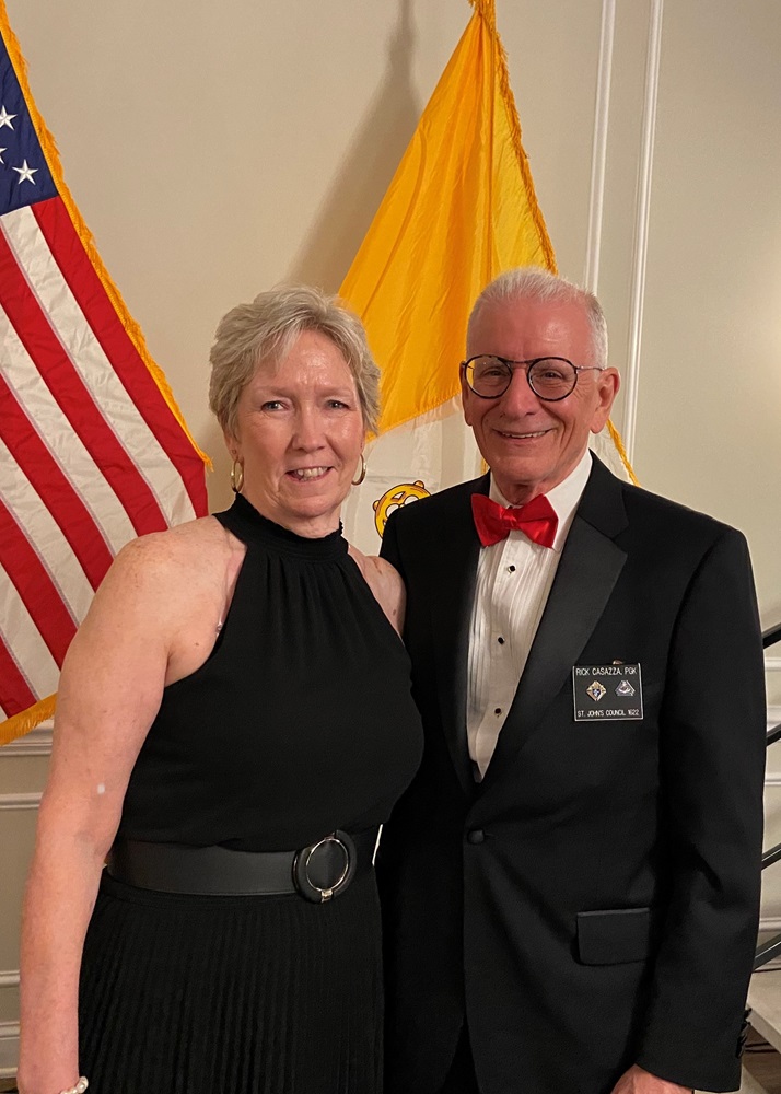 Saturday, April 13, 2024. KofC Maryland State Council, Founder's Day Awards Dinner at the White Rose, 21030 Point Lookout Road, Callaway, MD. (LtoR) Regina Casazza and Past Grand Knight Rick Casazza.