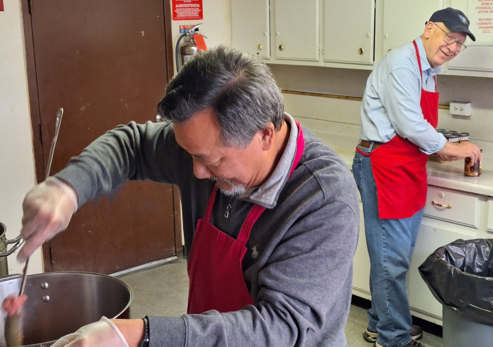 May 11, 2021 - We stumbled upon two Knights, Br. Maurice Wong (L) and PGK Bob Krajewski (R), hidden away in the kitchen at St. John the Evangelist Church. They were starting to prepare the dinner for an upcoming Tuesday's Men's Feast at St. John's. They don't trumpet their efforts but they epitomize the example of unselfish giving. Well done Brothers.