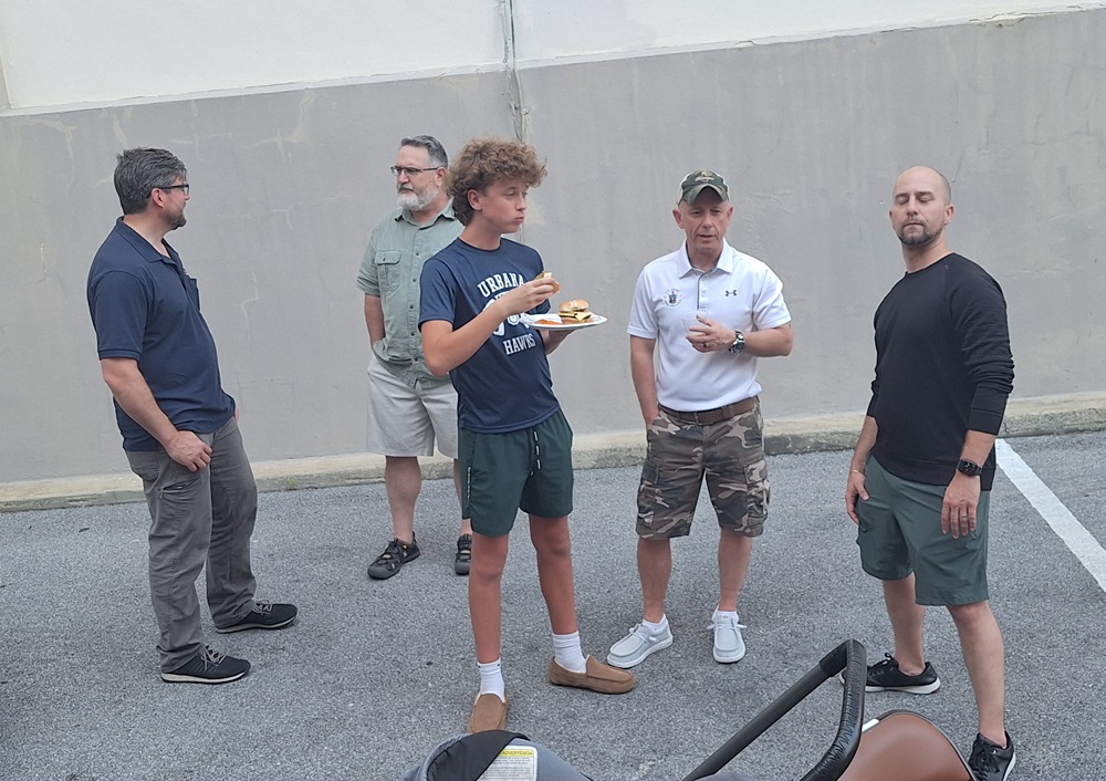June 4, 2024. First family cook out for St. John's Council No. 1622 for the summer behind St. John the Evangelist Church.