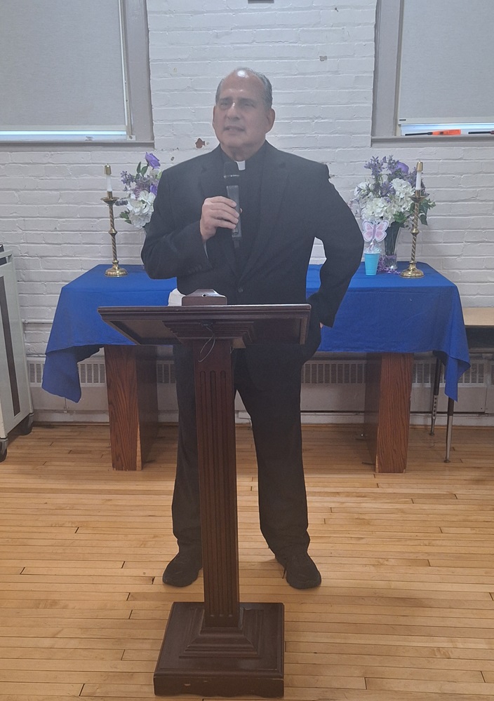 July 9, 2024. Knights prepare and serve dinner for Fr. Matt's monthly Men's Feast in the hall of St. John the Evangelist Church. Our guest speaker, Fr. Chuck Canterna, a long-time prison chaplain in Baltimore.