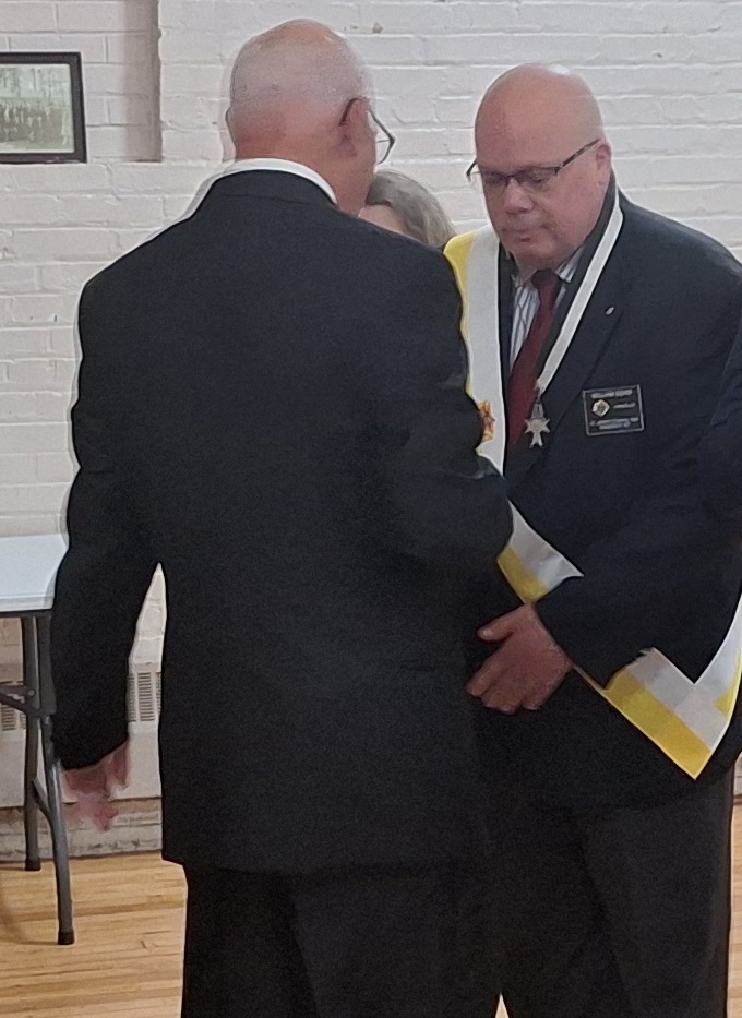 Maryland District 25 Deputy John Szarnicki presents the jewel of office to Incoming Chancellor William Sohm.
