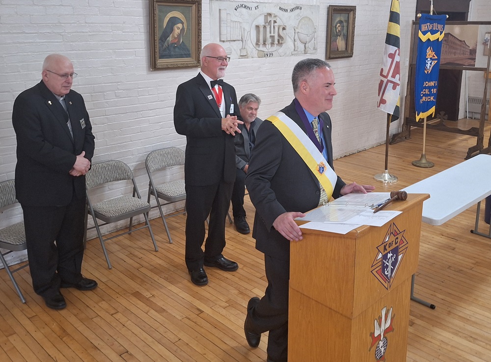 On Sunday, July 28, 2024, the Knights of Columbus, St. John's Council No. 1622 held an "Installation of Officers" ceremony for their new 2024-2025 Fraternal Year in the hall of the Sister Margaret Bauer Evangelization Center at St. John the Evangelist Catholic Church, Frederick, MD.