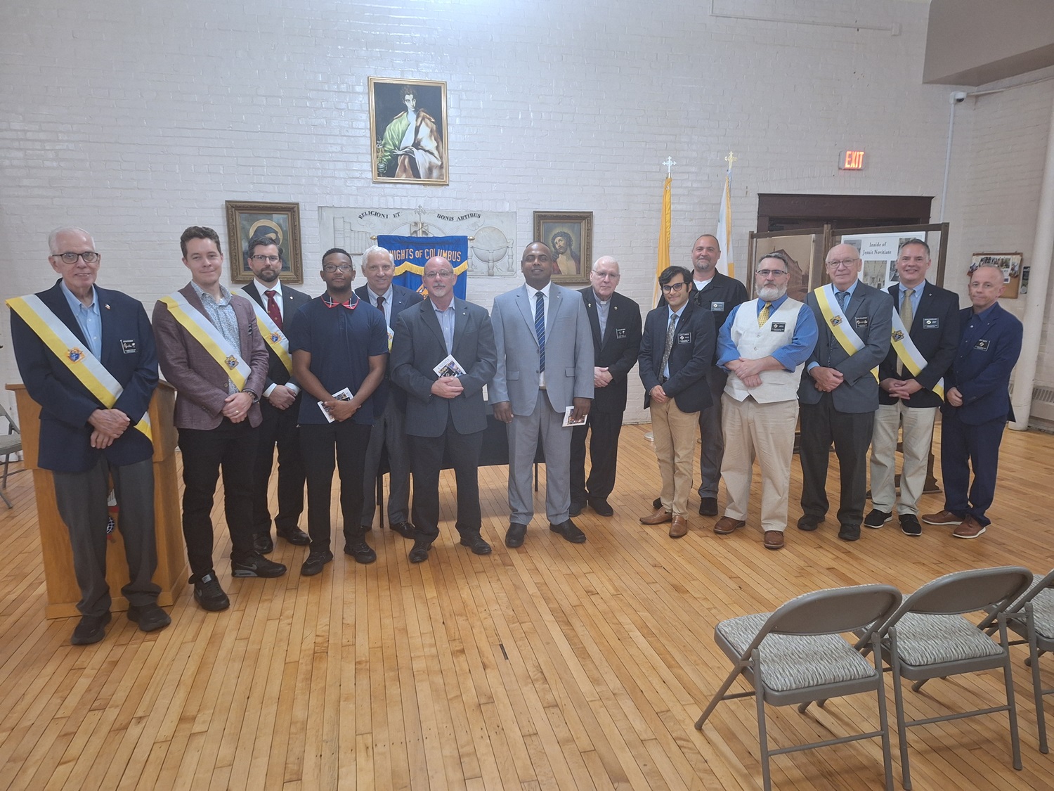 On Sunday, August 4, 2024, Knights of Columbus St. John’s Council No. 1622 conducted a Degree Exemplification for three new members, Brother (Br.) John Cipollo, Br. Cameron Earl, and Br. Jay Perera, in the parish hall at St. John the Evangelist Church, Frederick, MD.