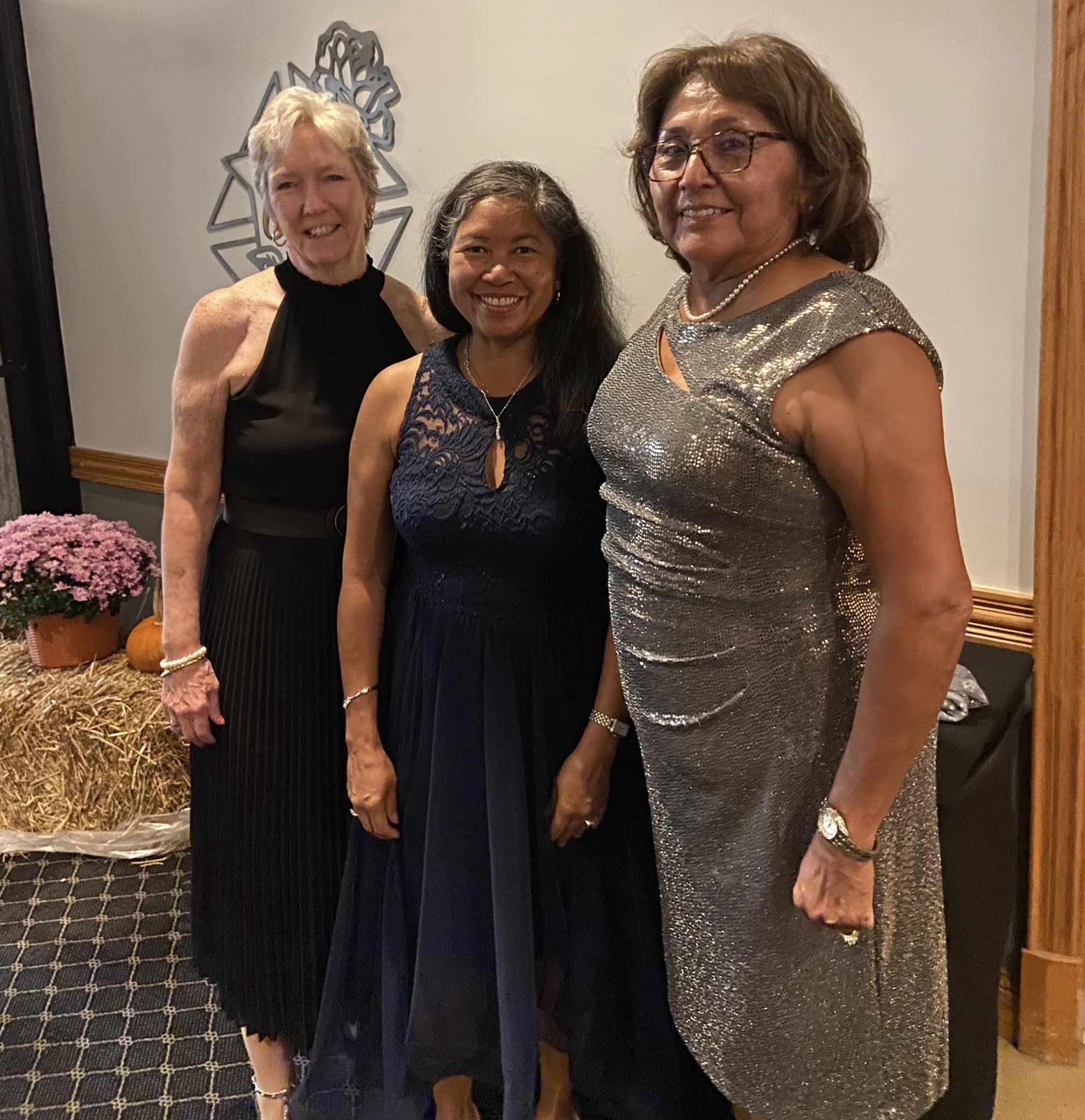 Saturday, 12 Oct 2024. Knights and their ladies attended the annual KofC Maryland State Council's Columbus Day Ball at the Columbus Gardens, Nottingham MD. (LtoR) Regina Casazza, Karlene Wong, and Pat Spuck.
