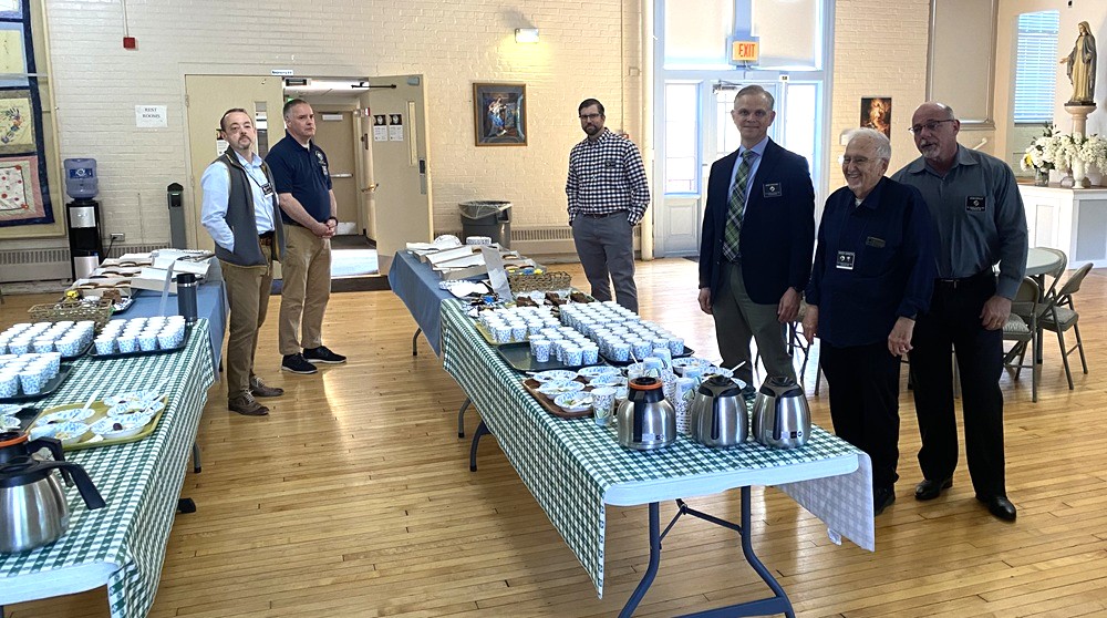 Sunday, April 27, 2025. St. John's Council 1622 members sponsor our monthly coffee and donuts social after Masses at St. John the Evangelist Church.