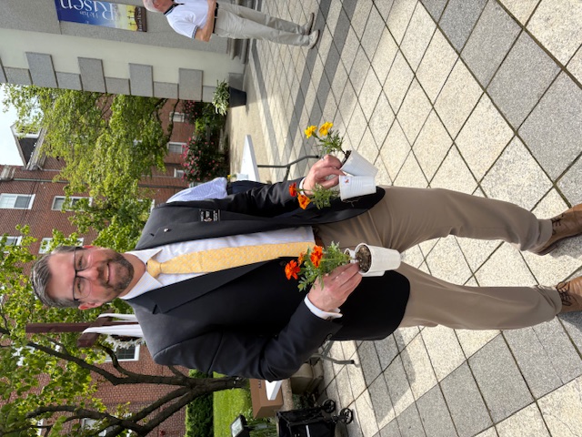 Sunday, May 11, 2025. St. John's Council 1622 Knights hand out marigolds to mothers on the Mother's Day weekend after Masses. Photo: PGK Rick Babbitt.