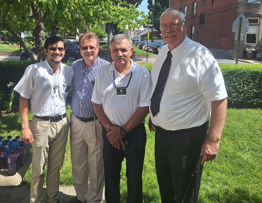 Photo (LtoR): Knights staging before the procession; Br. Mark Plavetic, Br. John Plavetic, PGK Refugio Rodriguez, and PGK Dave Satterfield.