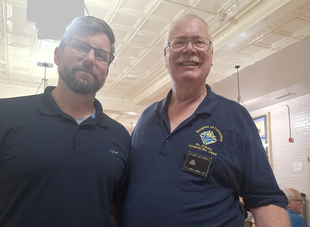 Tuesday, July 1, 2025, St. John's Council 1622's holds our monthly summer family picnic in the parish hall at St. John the Evangelist Church, Frederick, MD. The picnic was held inside due to rain. (LtoR): PGK Rick Babbitt and PGK Dave Satterfield.