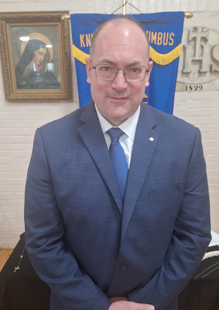 Saturday, July 12, 2025, St. John's Council 1622 conducted a Degree Exemplification for two new members, Br. Bill Kelly and Br. Mike Diehl, in the parish hall at St. John the Evangelist Church, Frederick, MD. Photo: New Knight Br. Bill Kelly.