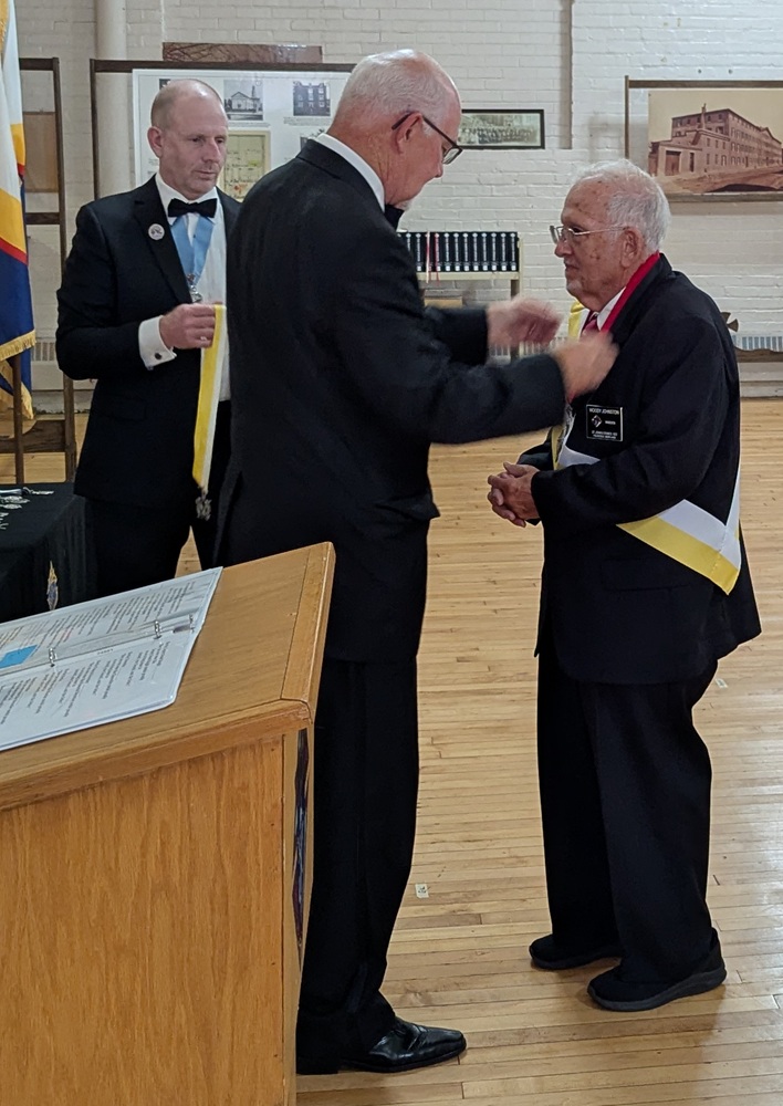 Photo: District 25 Deputy, Br. John Szarnicki, installs incoming Warden Br. Woody Johnston.