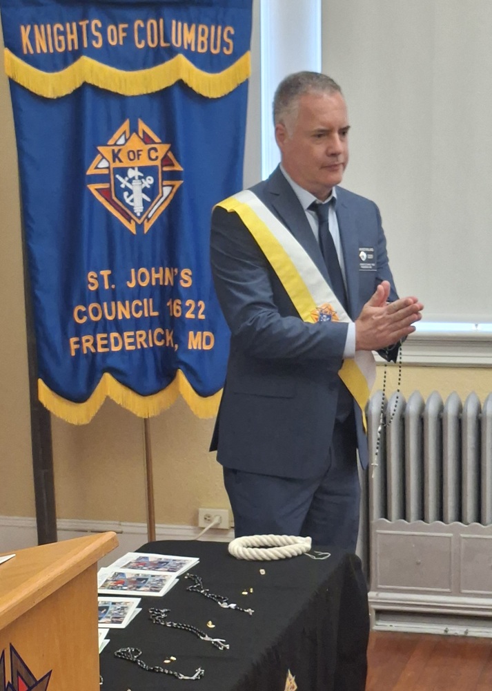 Tuesday, Sep 21, 2025, St. John's Council 1622 conducts a degree exemplification ceremony for new members in Room 10 of the Parish Center at St. John the Evagelist Church, Frederick, MD. Photo: Degree Team Member (DTM) Grand Knight Sean McFarland.