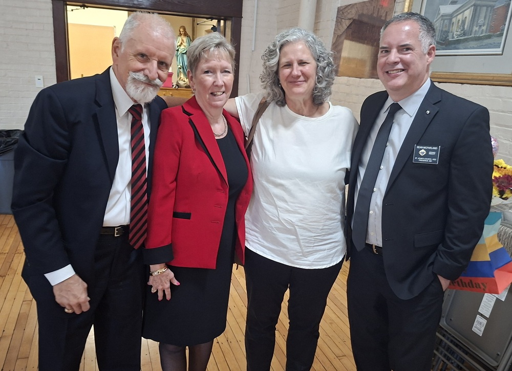 Knights assist in with reception in the parish hall. (LtoR) PGK Rick Casazza, Regina Casazza, Jessica McFarland, and Grand Knight Sean McFarland.