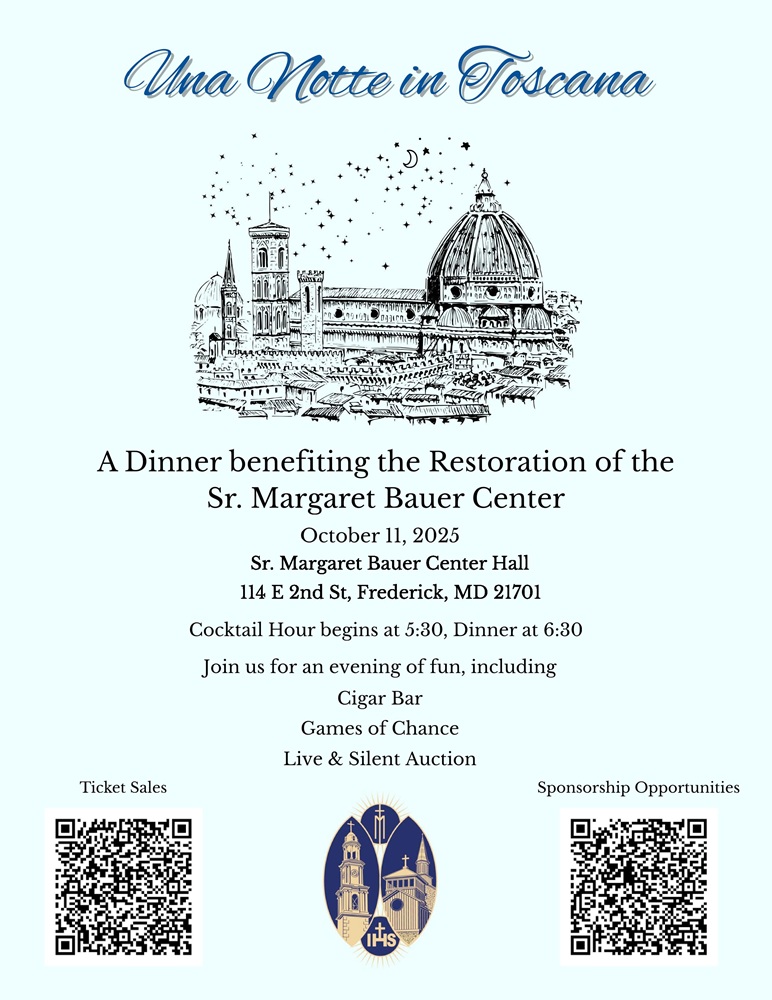 Oct 11, Knights of Columbus, St. John's Council 1622 hosted the "Una Notte In Toscana" Dinner Fundraiser benefiting the Restoration of our century-old St. Margaret Bauer Center. Dinner poster.