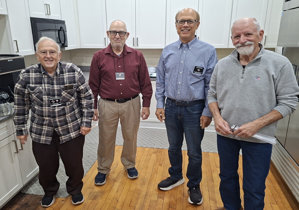 Sunday, Oct 26, 2025, Knights host a Coffee and Donut Social after Masses at St. John the Evangelist Church, Frederick, MD. (LtoR) Br. Woody Johnston, Br. John Fischer, Br. Jack Vivona, and PGK Rick Casazza.