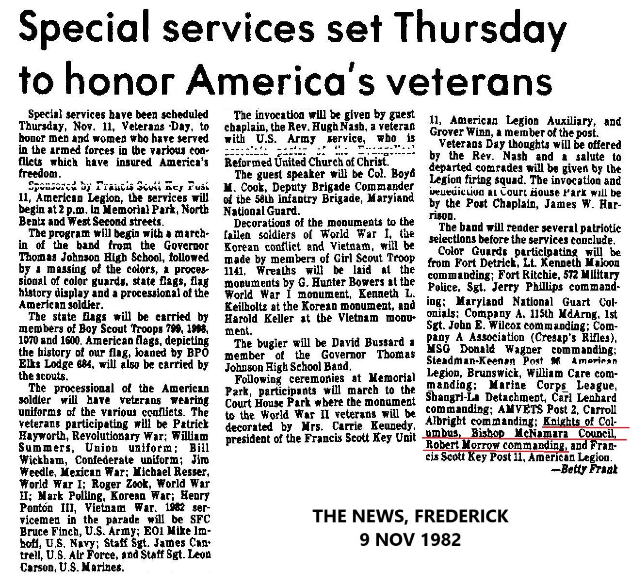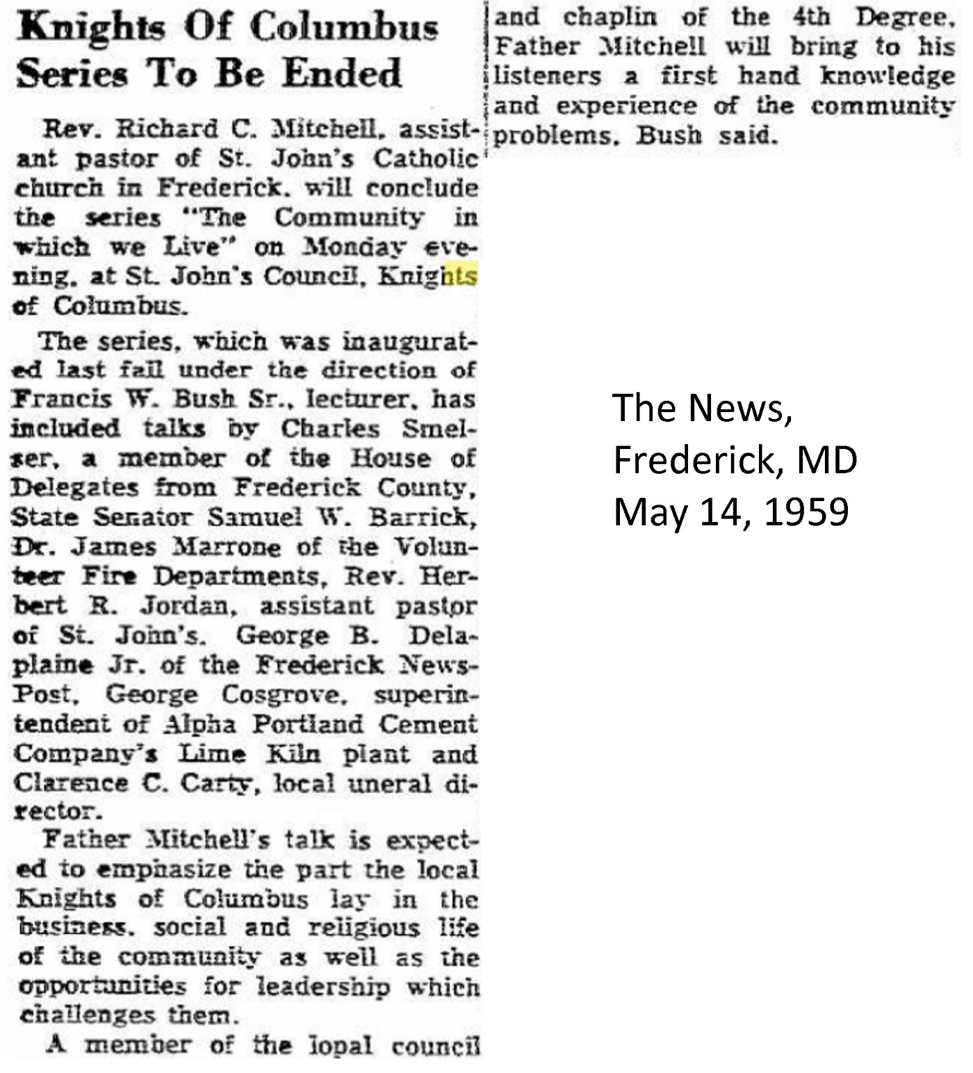 An extract from "Columbianism in Maryland 1897-1965", KofC Maryland State Council, 1965