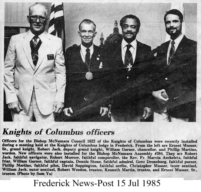 In the 1980's, Bishop McNamara Assembly met at the Council Home of Bishop McNamara Council No. 1622, located at 16 W. Seventh Street, Frederick, MD.