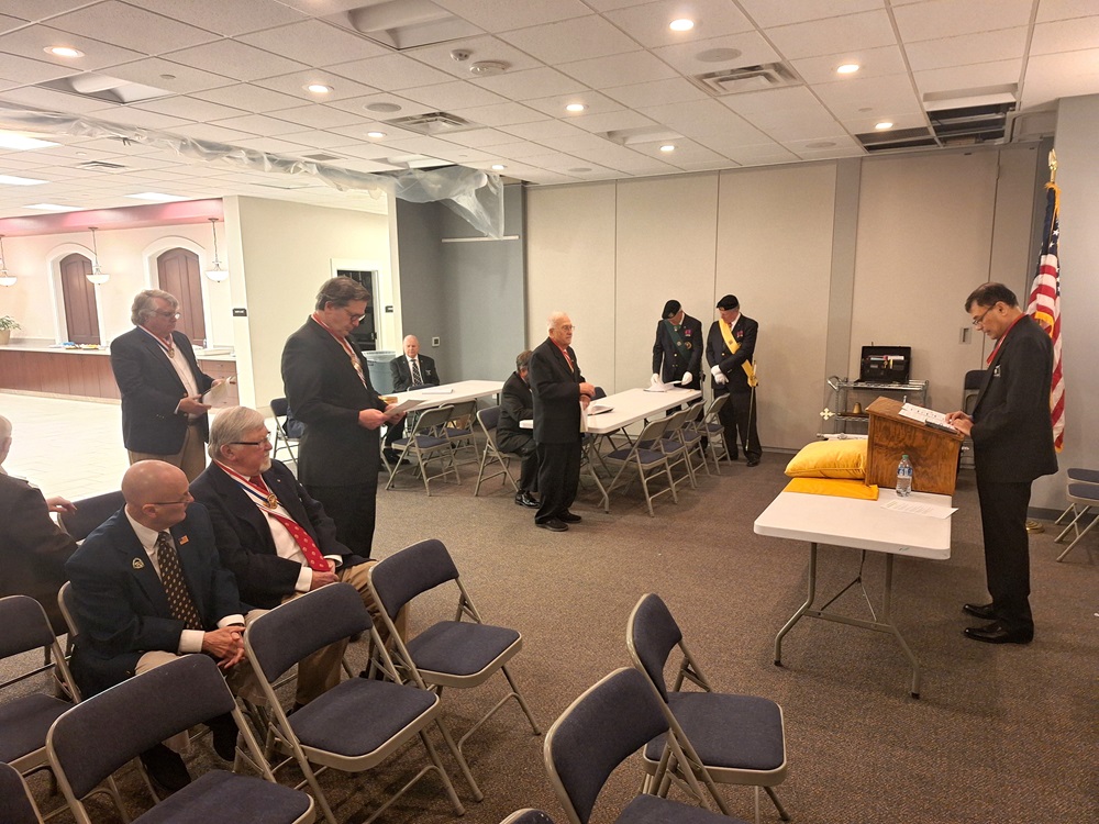 Faithful Navigator SK Jonas Rebeiro (far right) begins the ceremony, with standing officers (LtoR) Faithful Captain SK William Cutchin (Cncl 1622), Faithful Admiral PFN Lee J. Ericksen (PGK-Cncl 1622), and Faithful Pilot SK Woody Johnston (Cncl 1622).