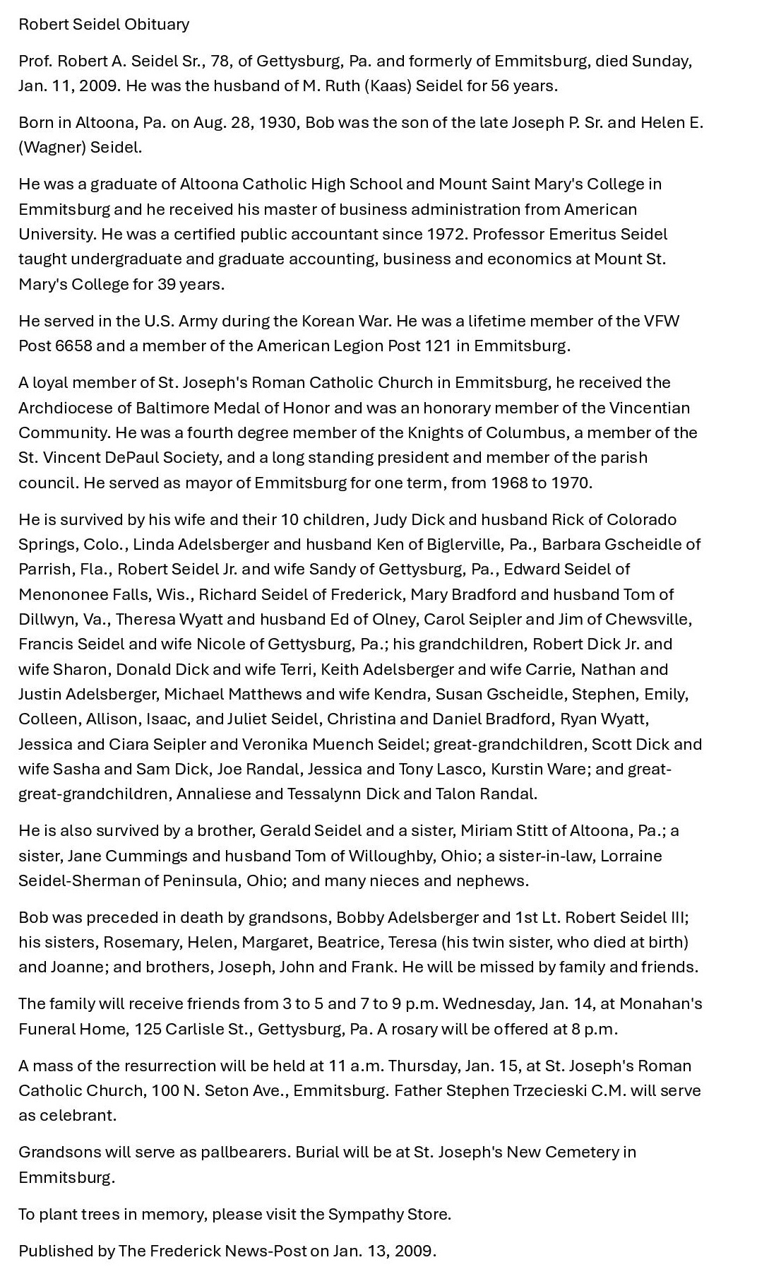 Obituary, - Council 14011 memorial.