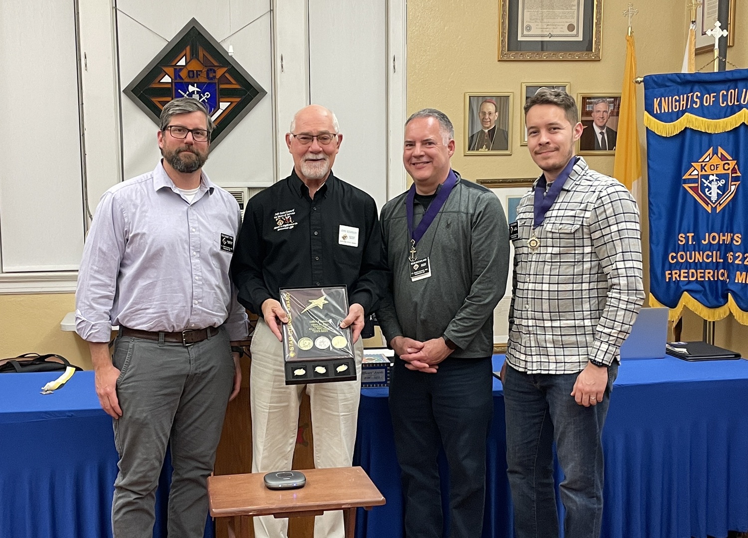 After 13 years of dedicated service by San Juan Bosco Council to the parish, members of San Juan Bosco Council No. 14726 and St. John's Council No. 1622 expressed interest in merging into a single council. On February 24, 2022, the Supreme Council in New Haven, CT, approved the merger of these two councils into one, to be known as St. John's Council No. 1622.