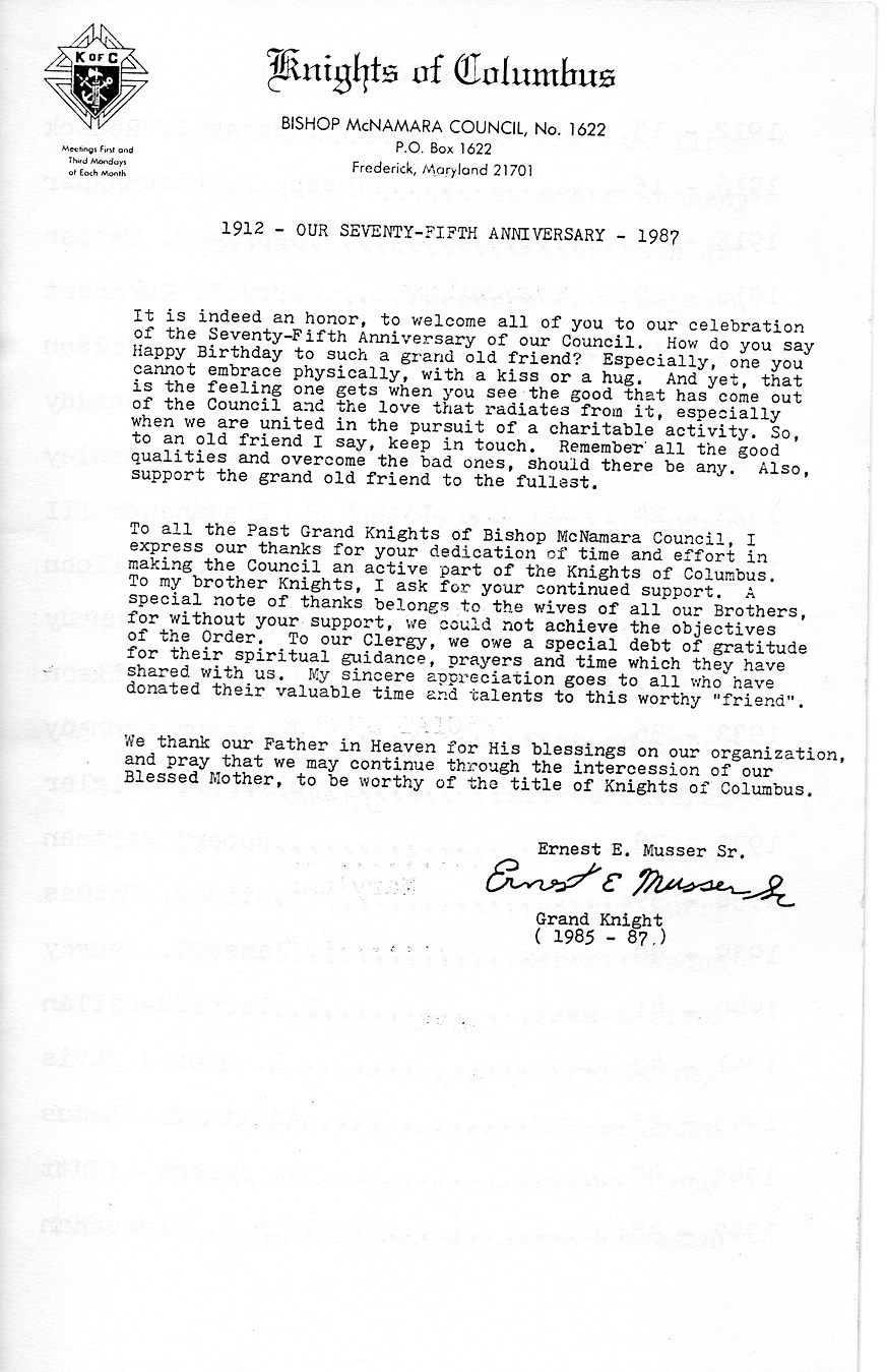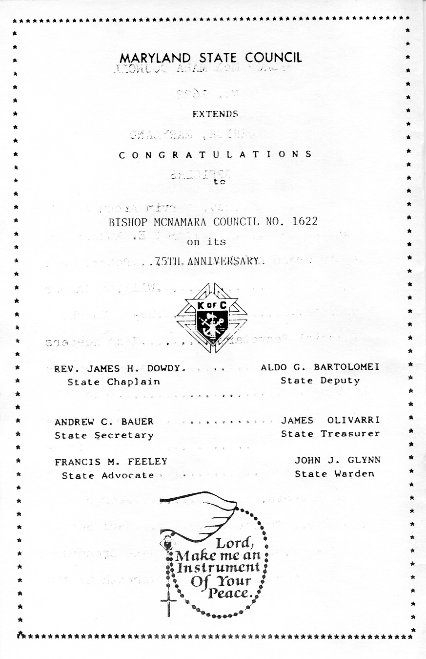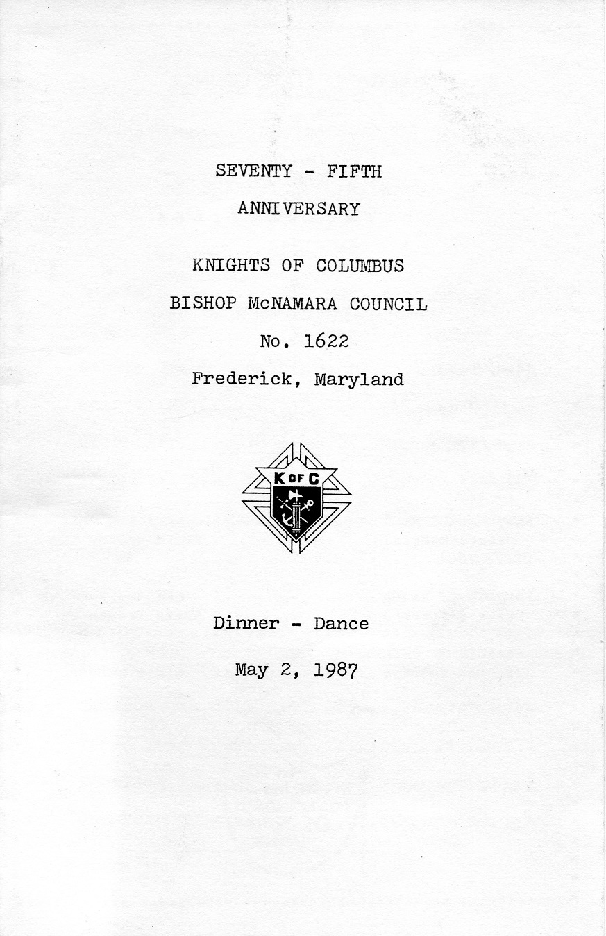 May 02, 1987 - Bishop McNamara Council #1622 - 75th Anniversary Celebration - Annversary Program Booklet.