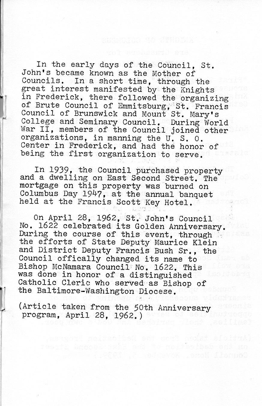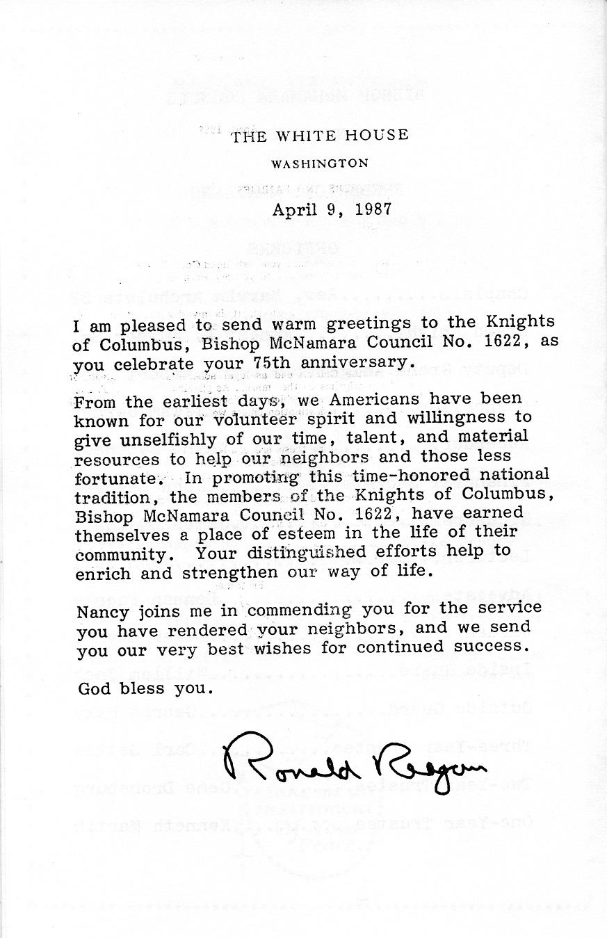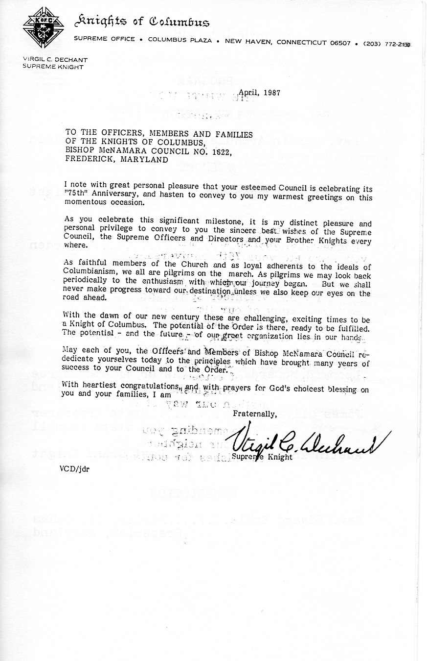 May 02, 1987 - Bishop McNamara Council #1622 - 75th Anniversary Celebration - Annversary Program Booklet.
