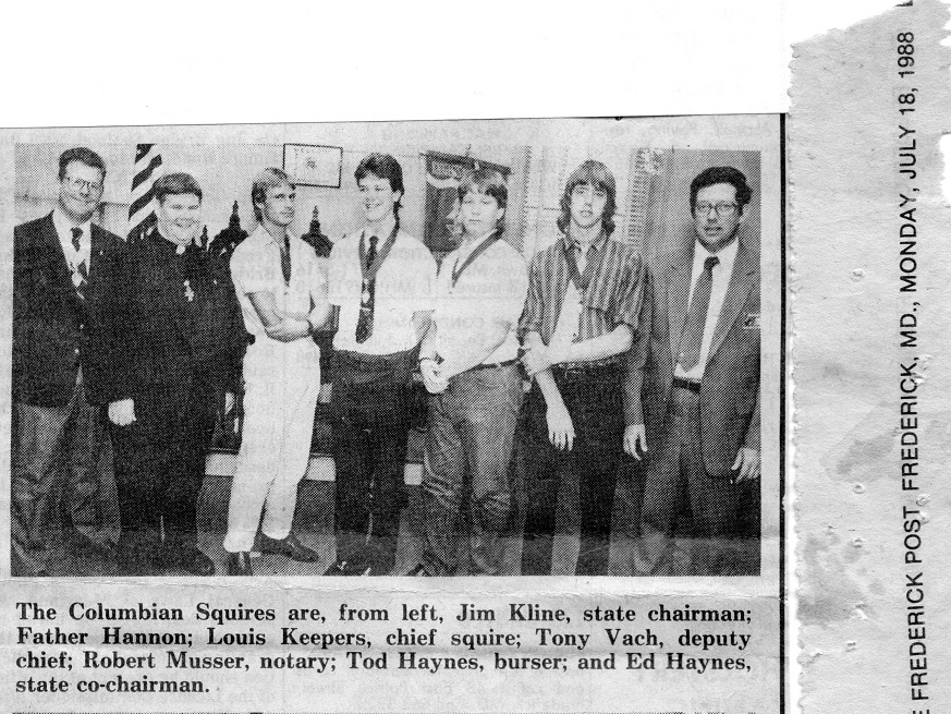 July 18, 1988 Frederick News Post Article - Bishop McNamara Council #1622 - Installation of Officers.