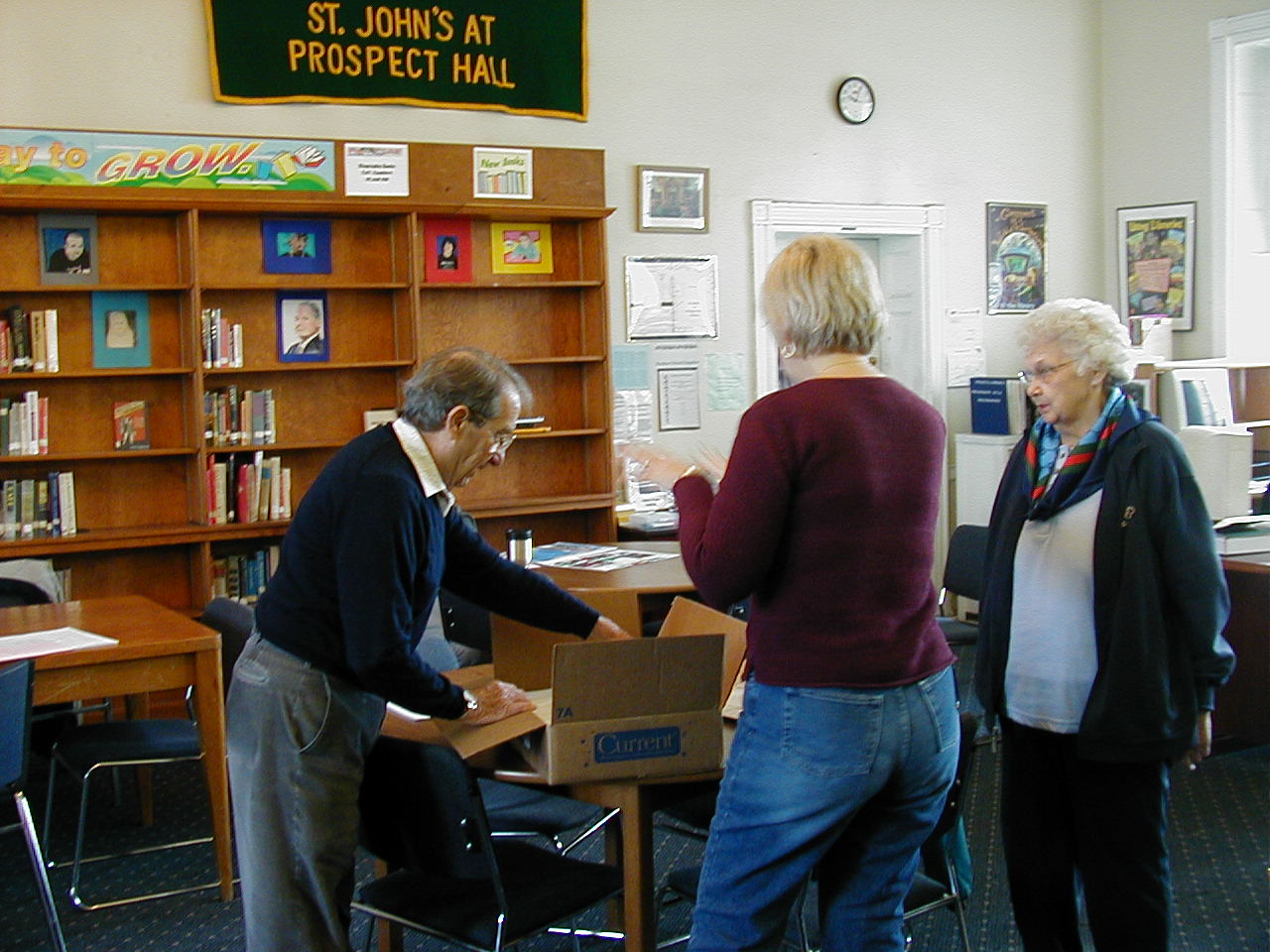 November 30, 2003 - Judging of artwork for the council's "Keep Christ in Christmas" poster contest in the library of St. John's Literary Institute at Prospect Hall. A council Youth Programs activity, chairman Br. Julius Pellegrino.