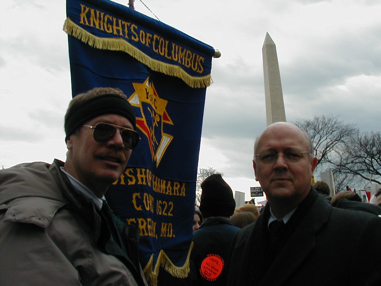 December 20, 2003 - The Knights of Columbus Bishop McNamara Council No. 1622, Bishop McNamara Assembly No. 384, and Bishop McNamara Council Ladies Auxiliary donate money and baby items to Birthright of Frederick. The Knights and family members donated items and held raffles during the their various holiday gatherings to benefit Birthright.