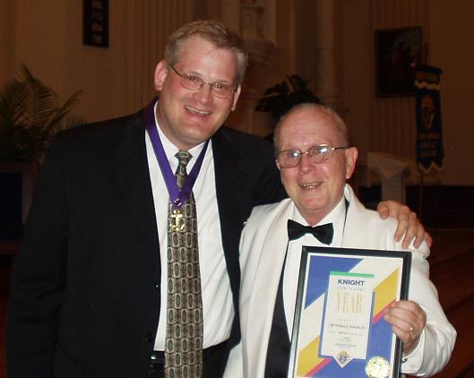 Presentation for Knight of the Year to PGK William Kinsella, Sr. (R) by Grand Knight Dave Zakrzwski (L).