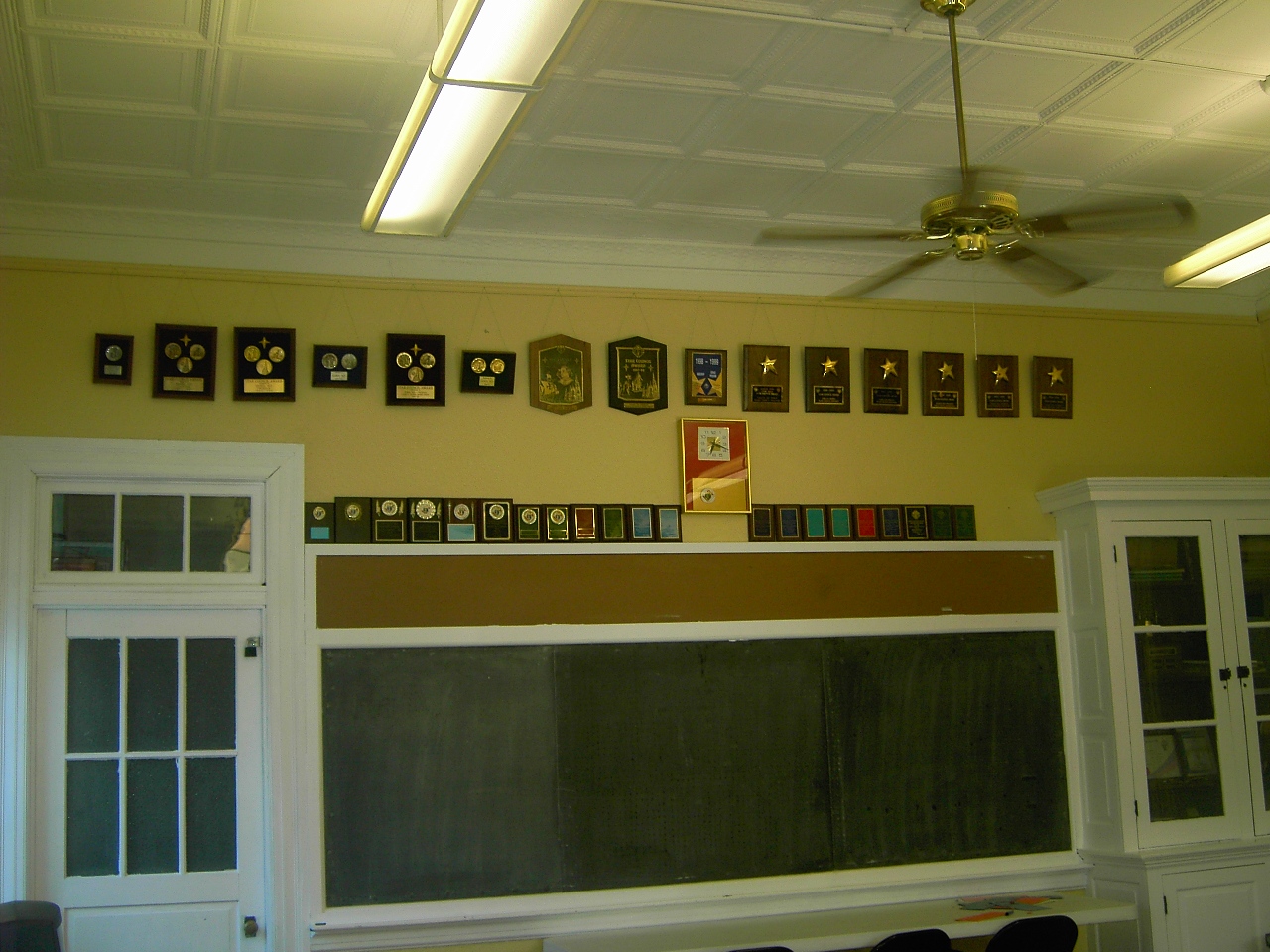 Council Chamber, East wall (rear of room): Star Council and other awards mounted on wall, beginning with dates around 1980.
