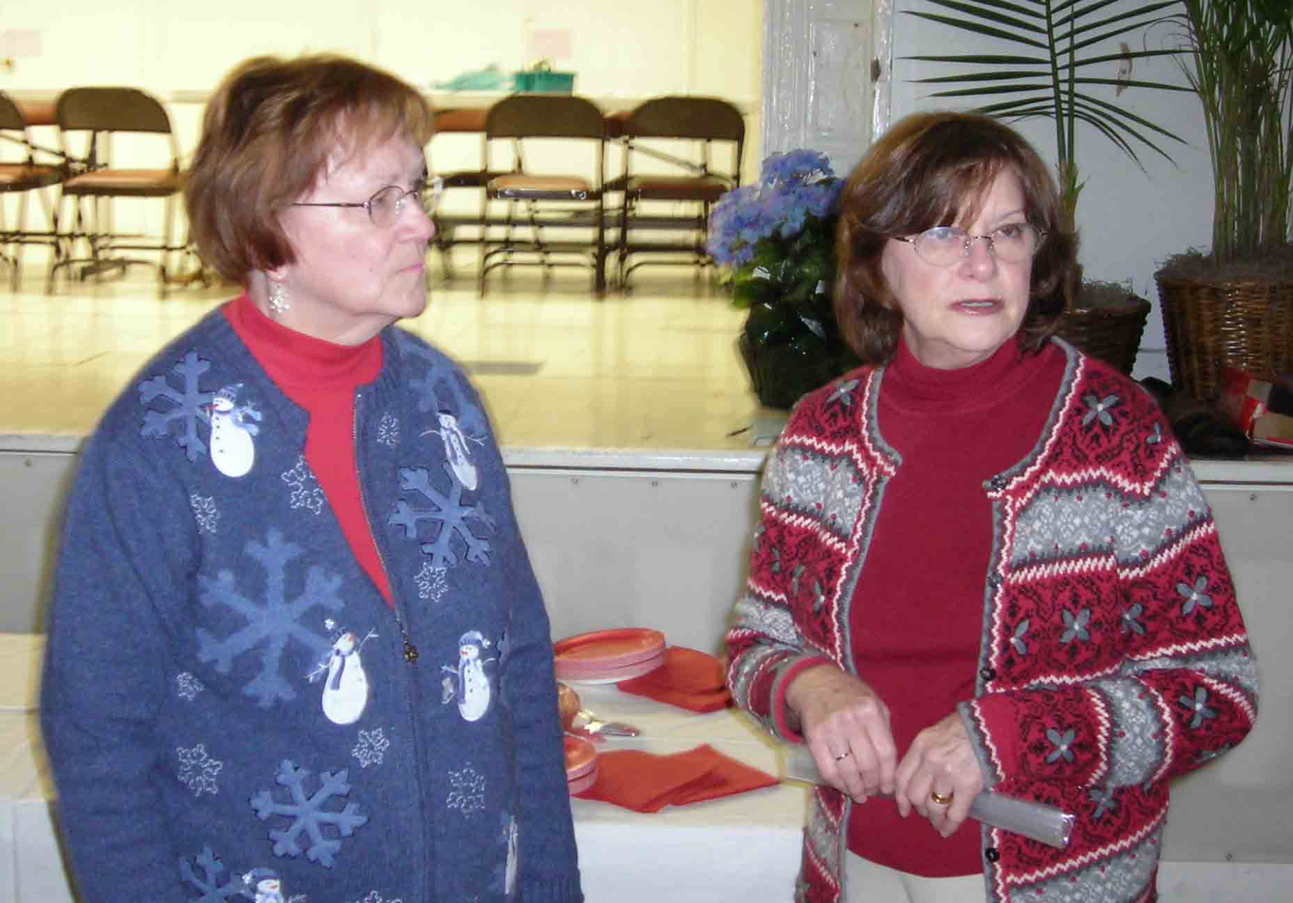&Pat Wierzbicky and Ellen Satterfield setting up for Council Christmas Party.