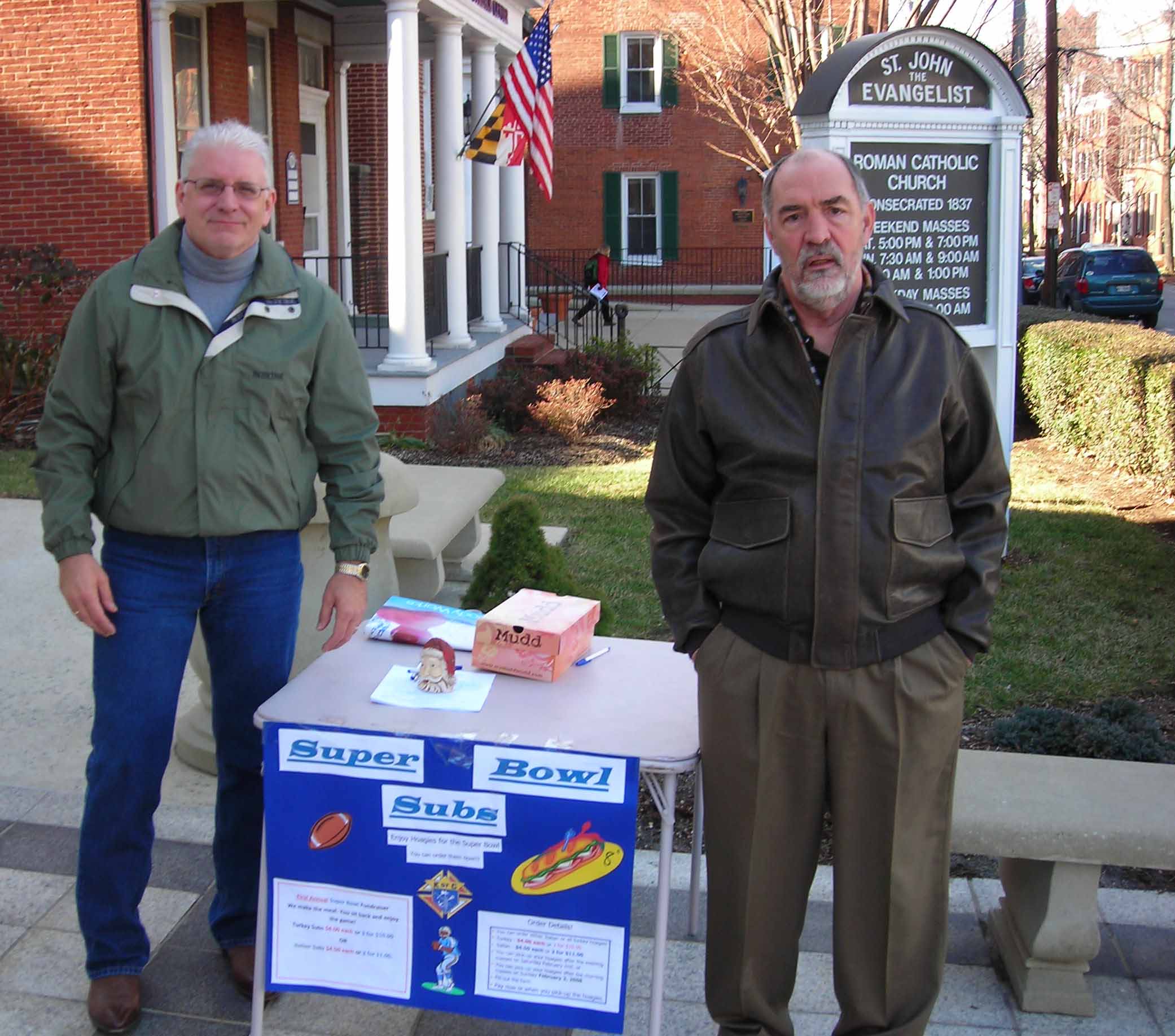 January 13, 2008 - DGK Rick Casazza and Br. John Satterfield taking Hoagie orders in front of St. John the Evangelist Catholic Church, Frederick, MD.