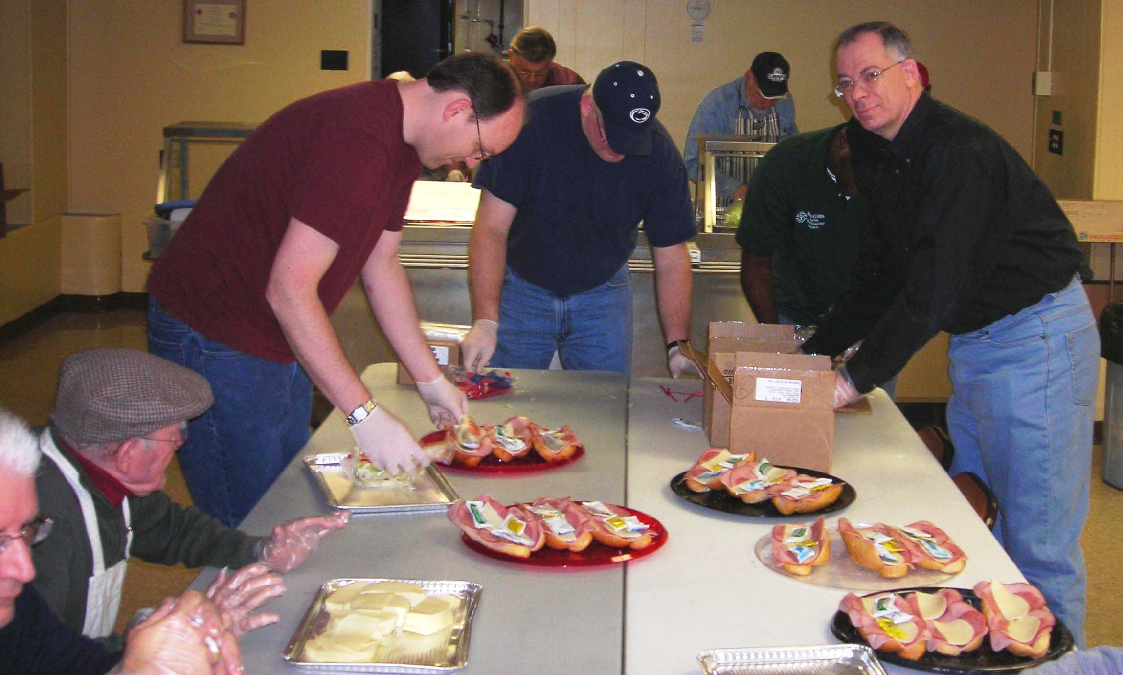 February 2, 2008 - Preparation of Hogies for Super Boawl Fund Raiser, in cafeteria in community center at St. John the Evangelist Catholic Church, Frederick, MD.
