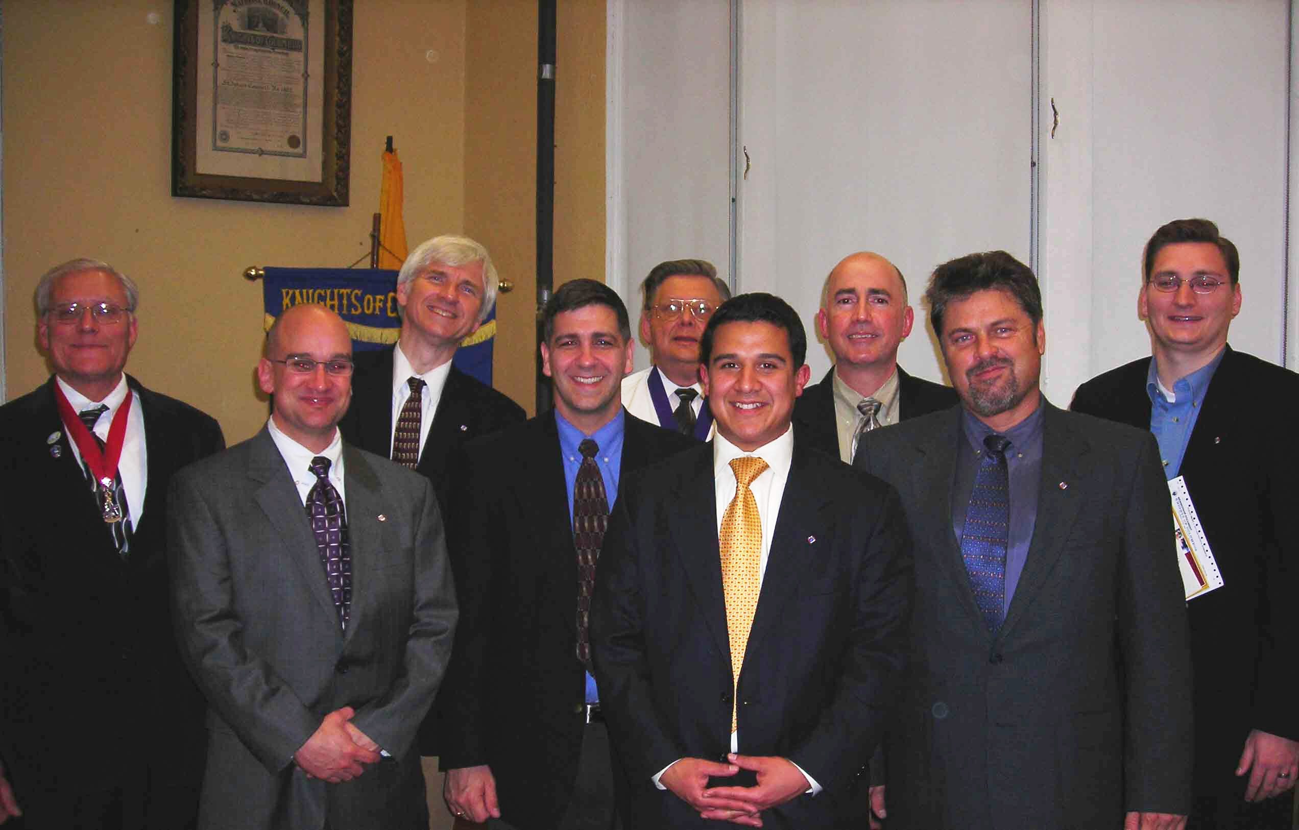 (LtoR) District 1 Deputy Greg Lattus, new Brother Chris Cook, new Brother Steve Shea, new Brother Joe Oliverio, GK Bill Wierzbicky (rear), new Brother Mike Currens, new Brother Guillermo, new Brother Tom Plunkett and new Brother Dario Cavazos.