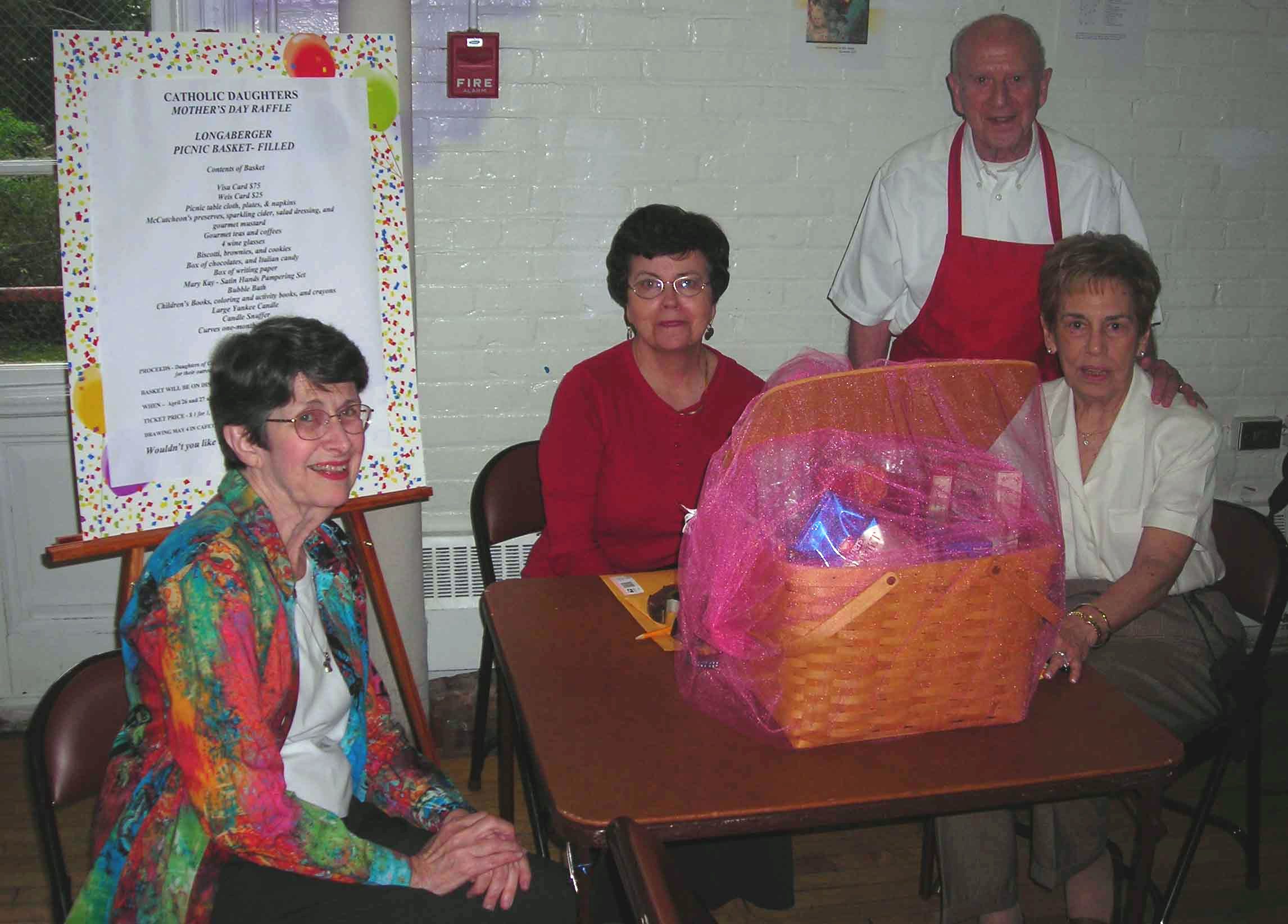 Raffle Booth of Catholic Daughters of the Americas. (LtoR) Eileen Borowski, Bonnie Rohr, Br. Sal Orlando and Carol Orlando.