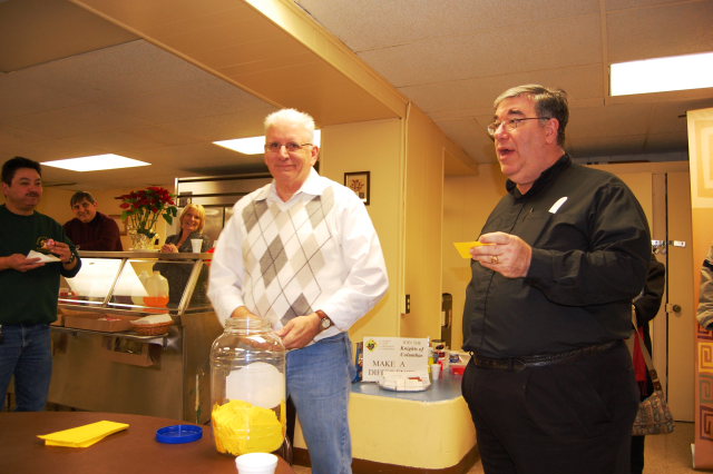Grand Knight Rick Casazza and Father Dick Murphy draw the winning ticket at our inaugural Super Bowl Raffle on January 31, 2010.