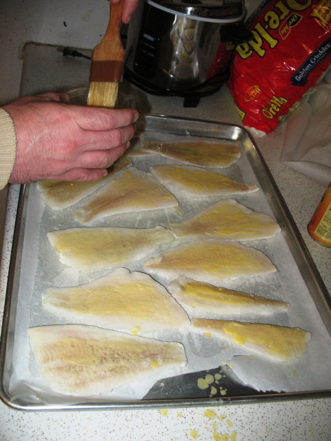 2010 Lenten Fish Fry. Preparing fish for baking.