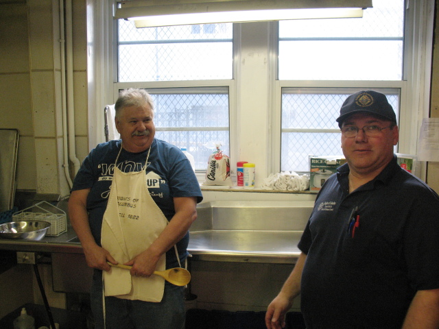 2010 Lenten Fish Fry. In the kitchen, Jim Kaney (brother-in-law of PGK Dave Satterfield) on left, Br. Larry Lindner on right.