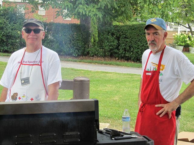 Br. Bob Krajewski and Br. John Satterfield man the grills at iServe on Friday, July 22, 2011.