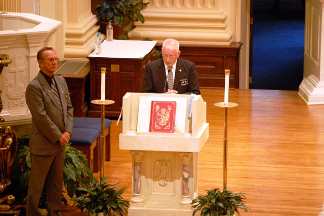 Outgoing GK Rick Casazza and Warden Pete Tokar at the Installation of Officers, held at SJE on July 29, 2011.