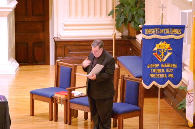 Monsignor Dick Murphy with the opening prayer at the Installation of Officers ceremony, held at St. John the Evangelist Church on July 29, 2011.